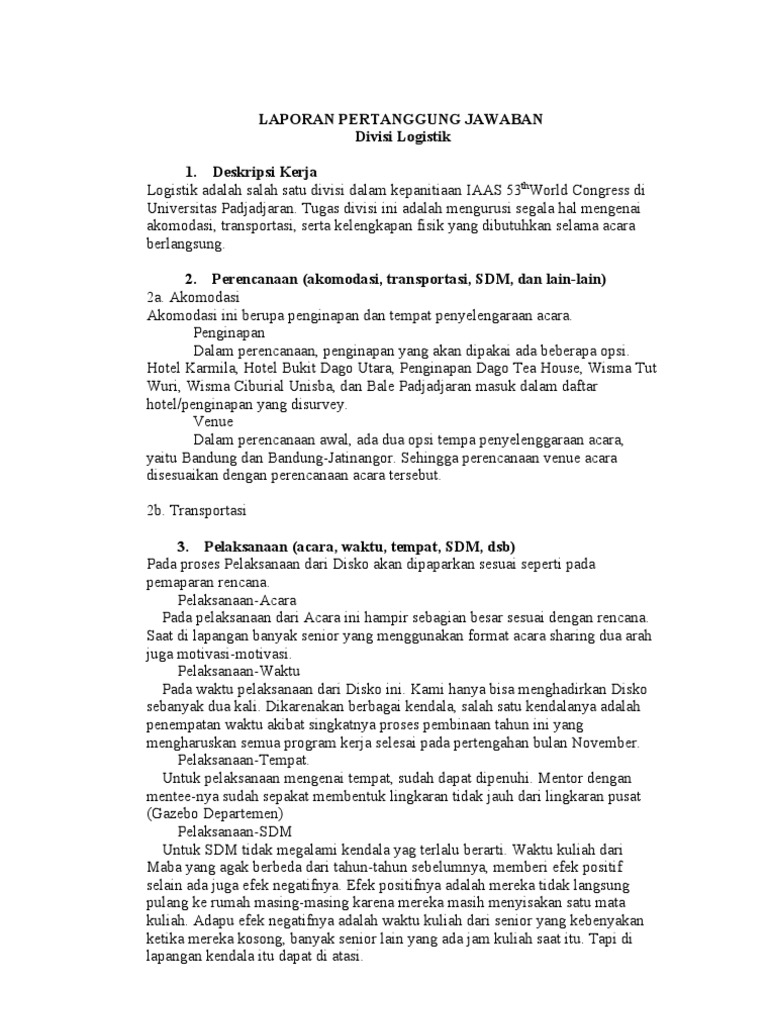 Tabel Program Kerja Dan Uraian Tugas Div Logistik Pdf